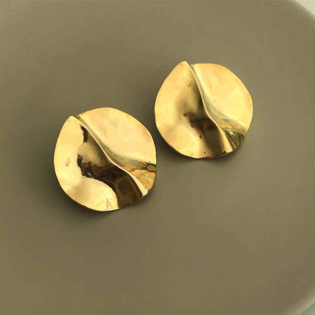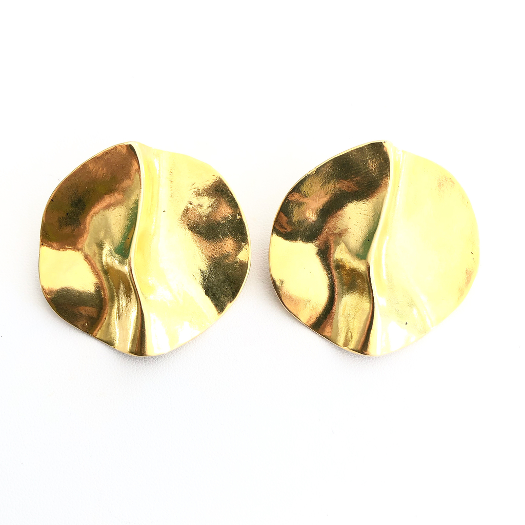 Brinco no estilo botão grande com detalhes levemente " martelados" em sua superficie, peça folheada a ouro vintage, aquele modelo que nunca sai de moda , que se usa em todas as estações do ano , perfeito para diversas ocasiões.
