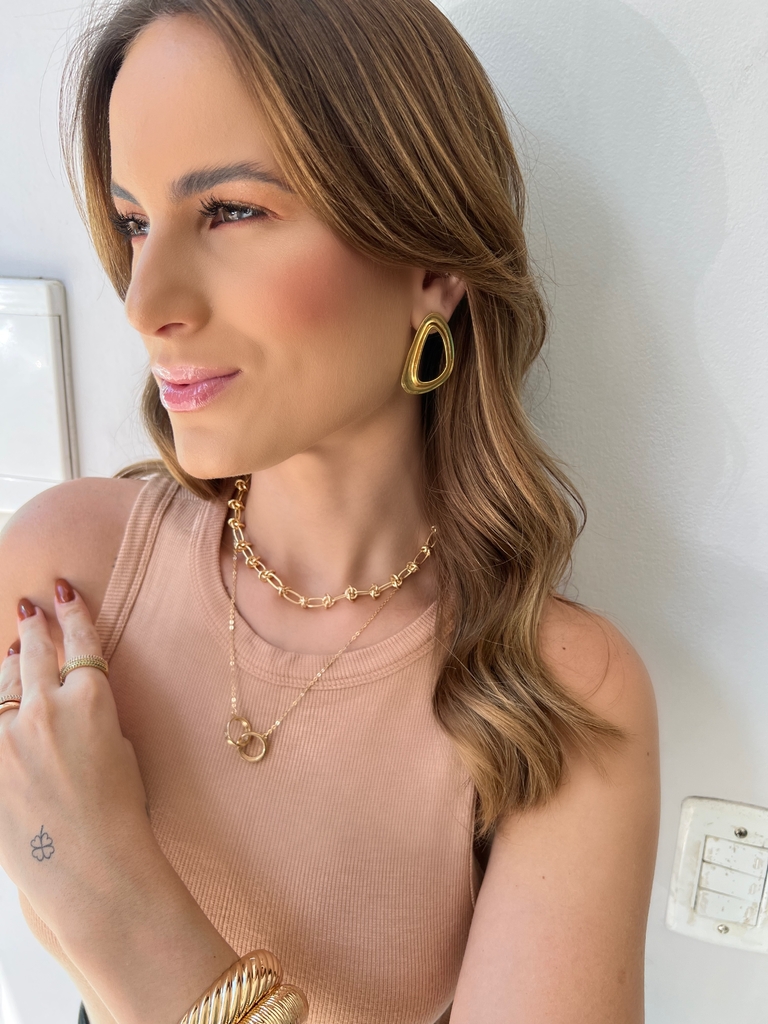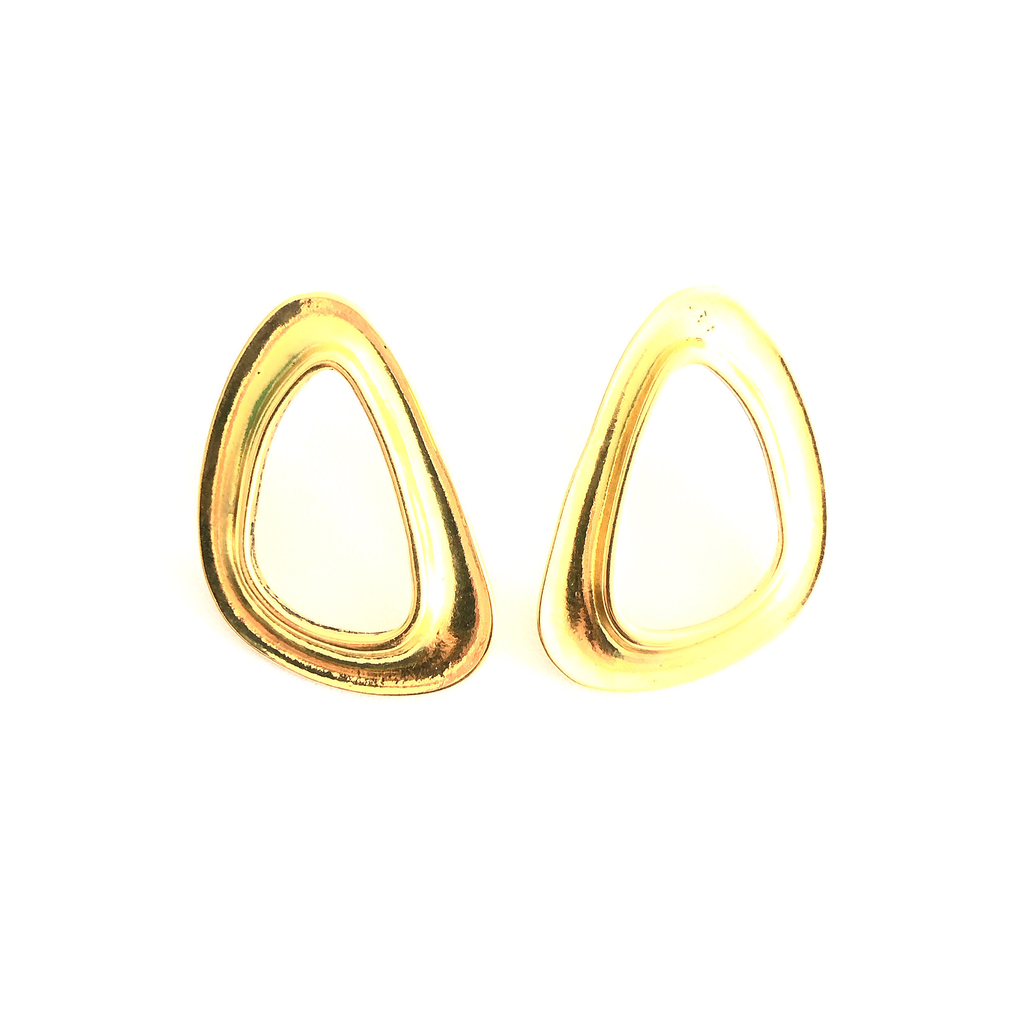 Brinco considerado de tamanho medio em formato de uma gota vazada, peça folheada a ouro vintage, não apresenta níquel em sua composição.