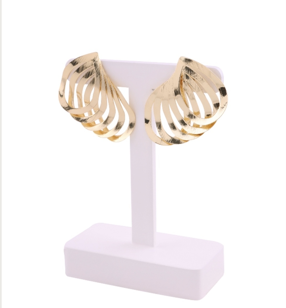 Brinco no estilo pendurado com design de folhas entrelaçadas e detalhes vazado, peça folheada a ouro 18k, super leve, livre de níquel.